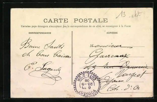 gelaufen 1908, Eckknicke links u. rechts unten, guter Zustand