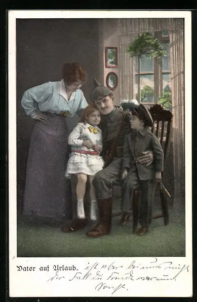 AK Vater auf Urlaub von der Front, Kleiner Sohn in Uniform