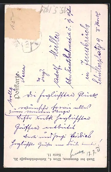 alte Ansichtskarte, gelaufen, Briefmarke entfernt, rückseitig Oberflächenschaden, Eckknick re. oben, guter Zustand