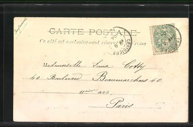 gelaufen 1904, Einriss oberer Rand, leicht fleckig, sonst guter Zustand