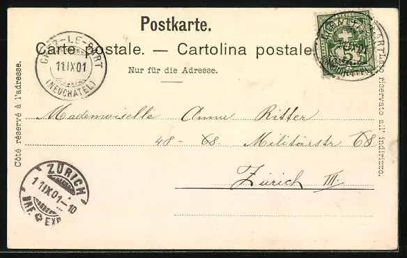 alte Ansichtskarte, gelaufen 1901, guter Zustand