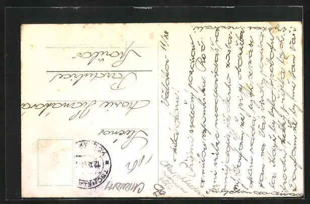 alte Ansichtskarte, gelaufen, Briefmarke entfernt, guter Zustand