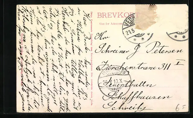 gelaufen 1910, Briefmarke entfernt, rückseitig Oberflächenschaden, guter Zustand