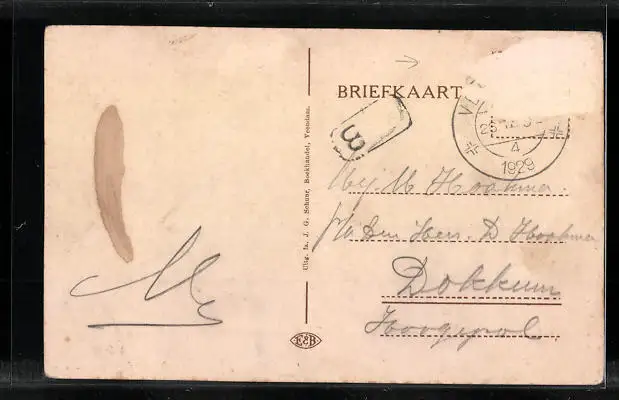 alte Ansichtskarte, gelaufen 1929, Briefmarke entfernt, rückseitig Oberflächenschaden, guter Zustand