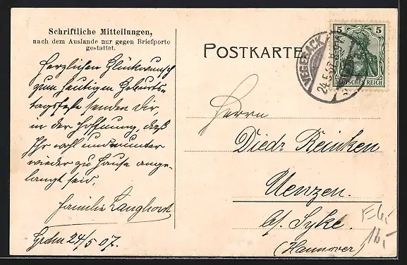 alte Ansichtskarte, gelaufen 1907, guter Zustand