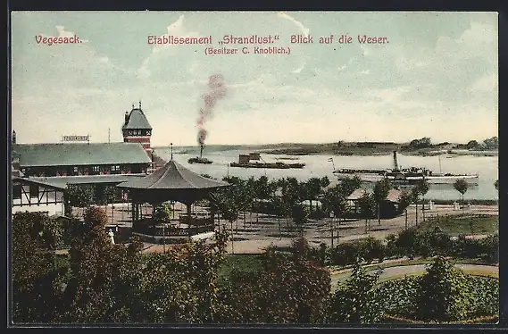 AK Vegesack, Etablissement Strandlust, Blick auf die Weser