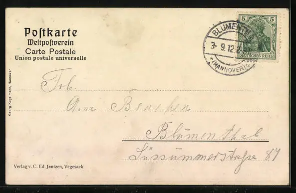 alte Ansichtskarte, gelaufen 1912, guter Zustand