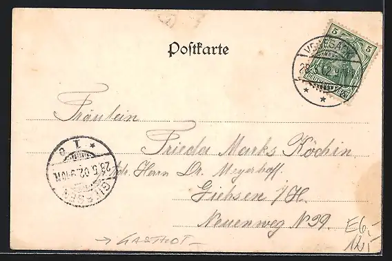 alte Ansichtskarte, gelaufen 1902, guter Zustand