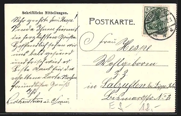 alte Ansichtskarte, gelaufen 1907, guter Zustand