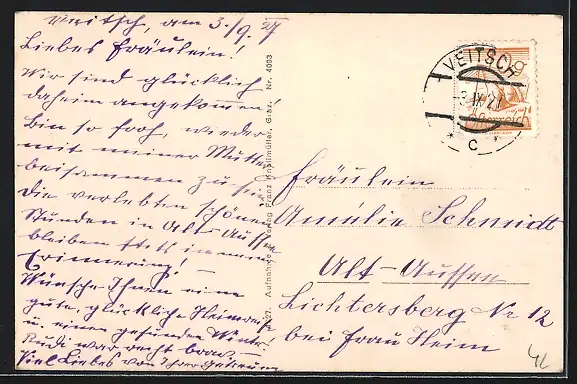 alte Ansichtskarte, gelaufen 1927, guter Zustand