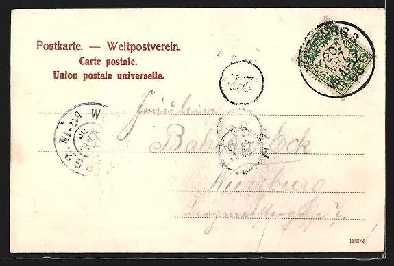 alte Ansichtskarte, gelaufen 1906, Stempelspur, guter Zustand