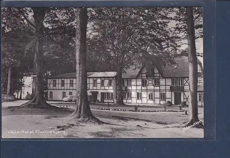 AK Vejle Hotel Munkebjerg, gelaufen von 1962, Karte ist oben wellig.