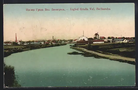 AK Vel. Beckerek, Panorama mit Flusspartie
