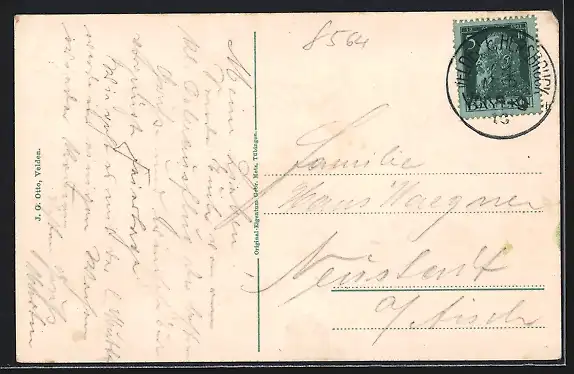 alte Ansichtskarte, gelaufen, Eckknick re. oben, minimaler Eckschaden li. oben
