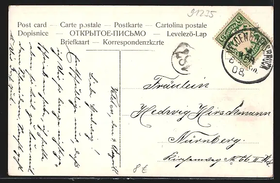 alte Ansichtskarte, gelaufen 1908, guter Zustand