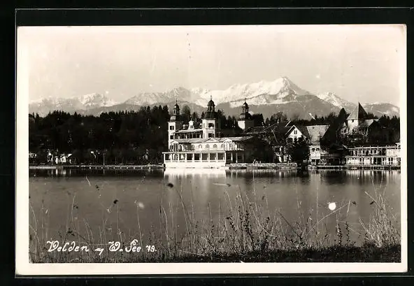 AK Velden a. W. See, Blick auf See und Berge