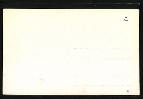 Personenbezogene Daten auf der Rückseite der Karte wurden durch blauen Textmarker unkenntlich gemacht. Die blauen Stellen sind auf die Vorderseite durchgeweicht und wirken sich negativ auf das Postkartenfoto aus