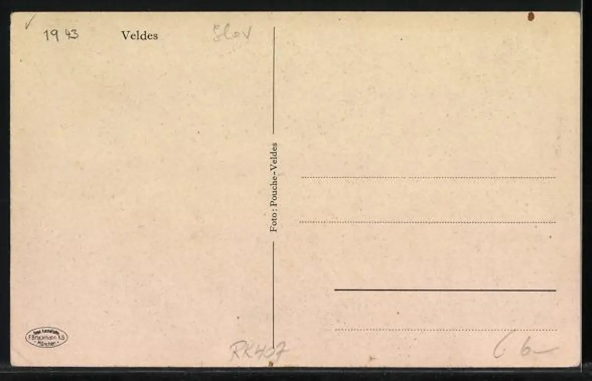 Personenbezogene Daten auf der Rückseite der Karte wurden durch blauen Textmarker unkenntlich gemacht. Die blauen Stellen sind auf die Vorderseite durchgeweicht und wirken sich negativ auf das Postkartenfoto aus