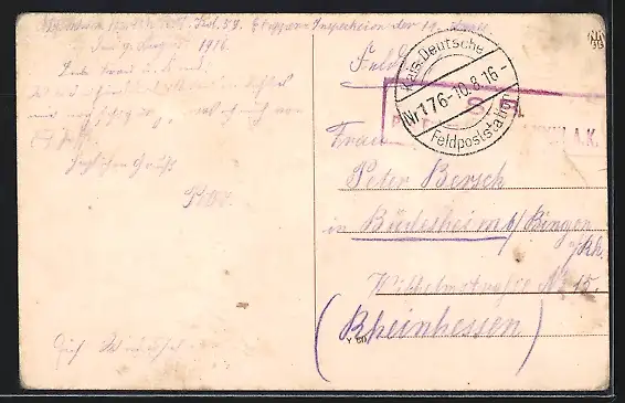 alte Ansichtskarte, gelaufen 1916, Bugspur mittig, guter Zustand