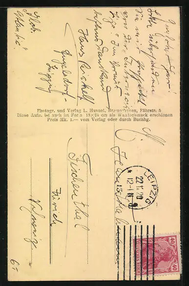 alte Ansichtskarte, gelaufen 1920, Eckknick unten li., guter Zustand
