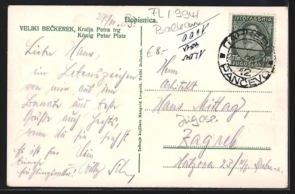 AK Veliki Beckerek, König Petar Platz