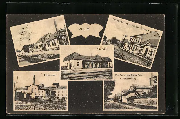 AK Velim, Cukrovar, Nadrazi / Bahnhof