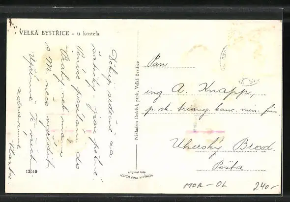 AK Velká Bystrice, u kostela, Teilansicht mit Kirche