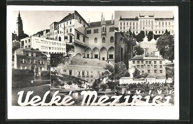 AK Velke Mezirici, Strassenpartie mit Hotel, Uferpartie, Ortspartie