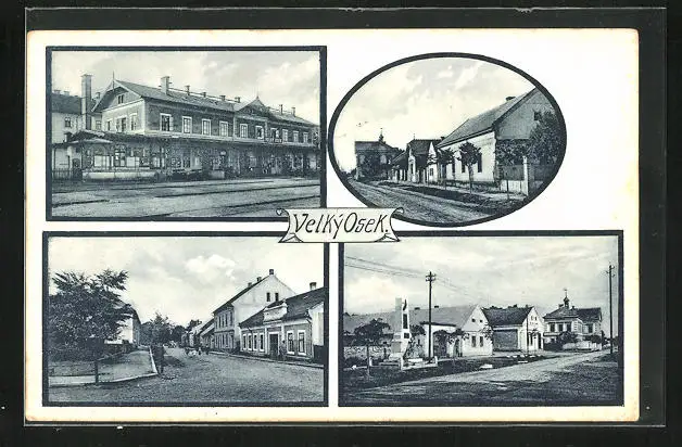 AK Velky Osek, Bahnhof und Strassenpartien