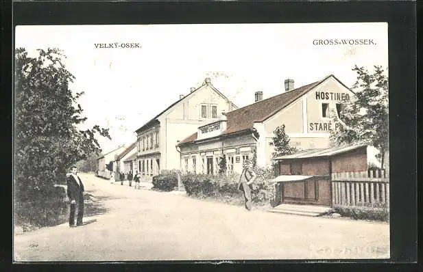 AK Velky-Osek, Strassenpartie mit Gasthaus