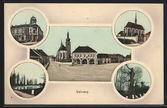 AK Velvary, Marktplatz, Kirche & Teich