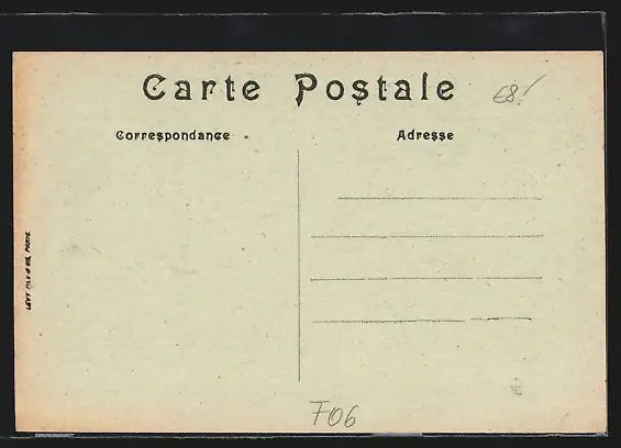 Personenbezogene Daten auf der Rückseite der Karte wurden durch blauen Textmarker unkenntlich gemacht. Die blauen Stellen sind auf die Vorderseite durchgeweicht und wirken sich negativ auf das Postkartenfoto aus