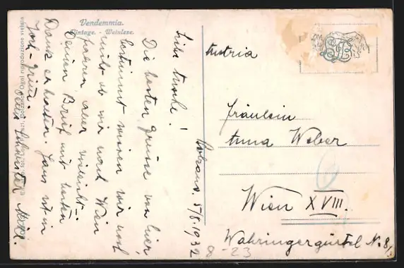 alte Ansichtskarte, gelaufen 1932, Briefmarke entfernt, rückseitig Oberflächenschaden, guter Zustand