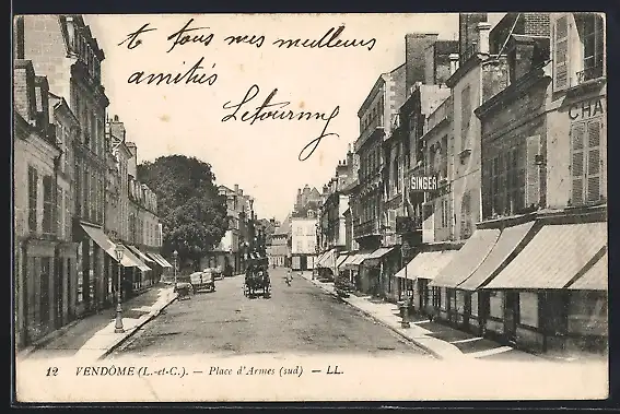 AK Vendôme, Place d`Armes sud avec calèche et bâtiments historiques