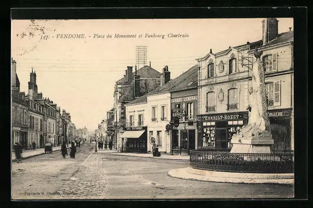 AK Vendome, Place du Monument et Faubourg Chartrain