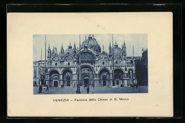 Personenbezogene Daten auf der Rückseite der Karte wurden durch blauen Textmarker unkenntlich gemacht. Die blauen Stellen sind auf die Vorderseite durchgeweicht und wirken sich negativ auf das Postkartenfoto aus