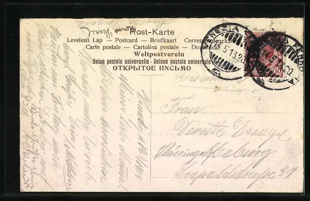 alte Ansichtskarte, gelaufen 1913, Stempelspur, guter Zustand