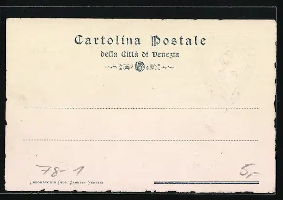 Personenbezogene Daten auf der Rückseite der Karte wurden durch blauen Textmarker unkenntlich gemacht. Die blauen Stellen sind auf die Vorderseite durchgeweicht und wirken sich negativ auf das Postkartenfoto aus