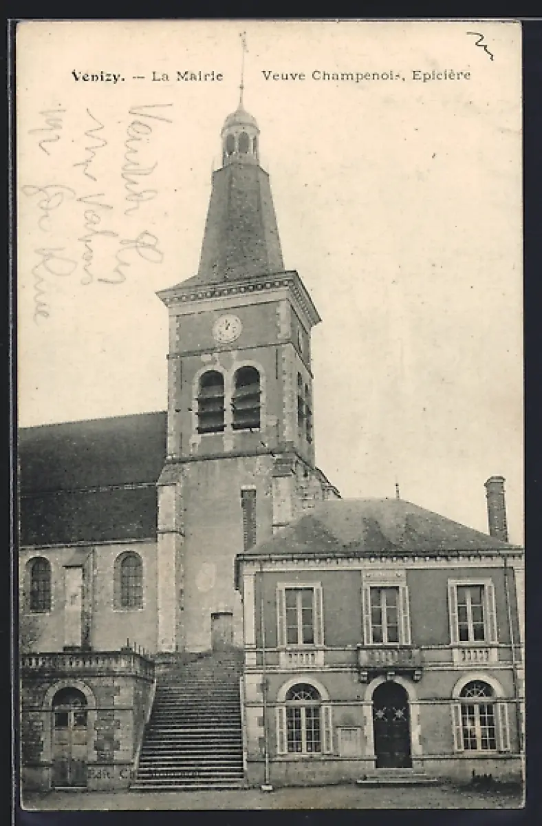 AK Venizy, La Mairie et église adjacente