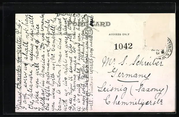 alte Ansichtskarte, gelaufen, Briefmarke entfernt, rückseitig Oberflächenschaden, guter Zustand