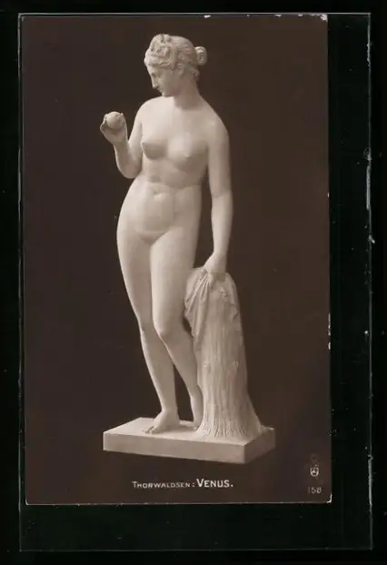 AK Venus, nackte Frau hält einen Apfel in der Hand, Plastik