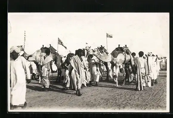 AK Veranstaltung mit gesattelten Kamelen