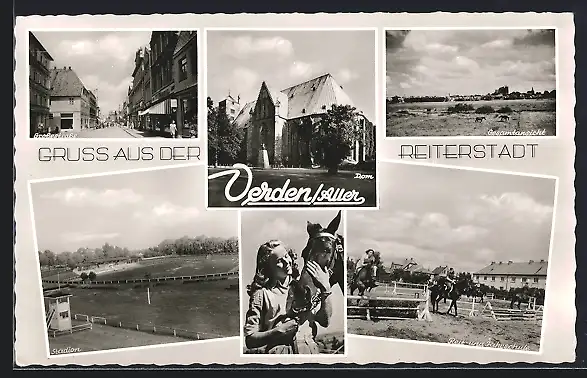 AK Verden /Aller, Stadion, Reit- und Fahschule, Dom, Strassenpartie
