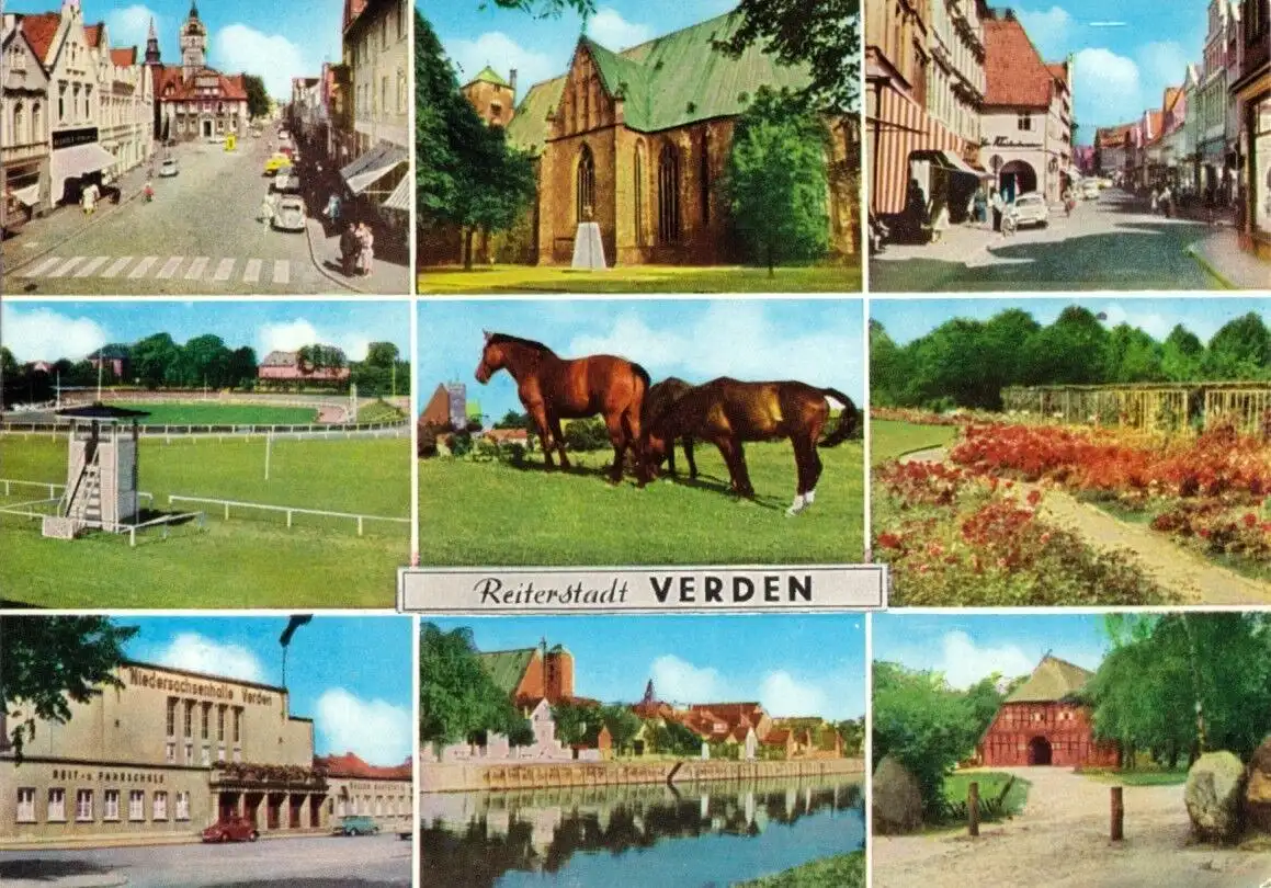 Ansichtskarte Verden Aller neun Abb. Erhaltung I-II, Marke entfernt postalisch gelaufen, gestempelt: Verden, 26.6.[75] Verlag: Ferd. Lagerbauer & Co., Hamburg 33