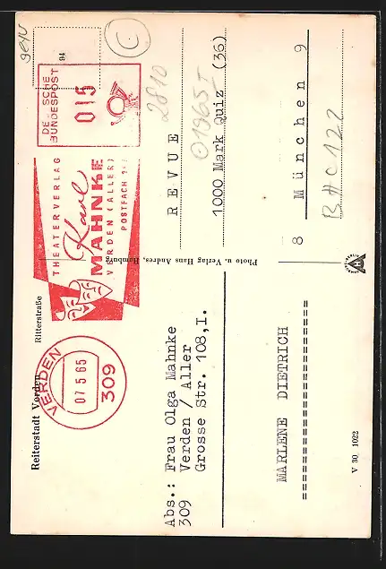 alte Ansichtskarte, gelaufen 1965, guter Zustand