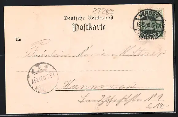 alte Ansichtskarte, gelaufen 1900, guter Zustand