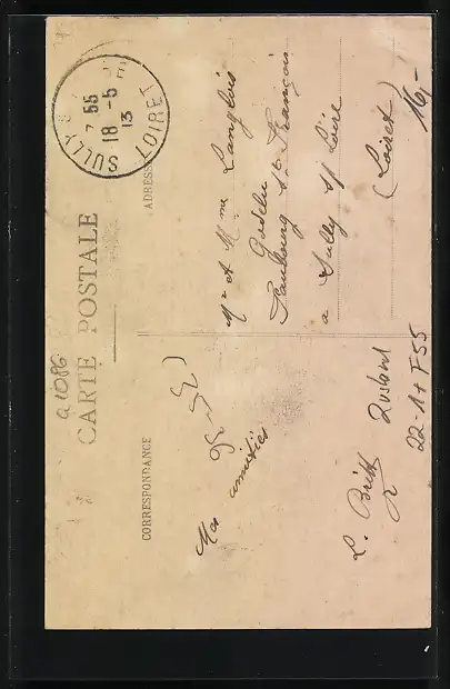 Personenbezogene Daten auf der Rückseite der Karte wurden durch blauen Textmarker unkenntlich gemacht. Die blauen Stellen sind auf die Vorderseite durchgeweicht und wirken sich negativ auf das Postkartenfoto aus