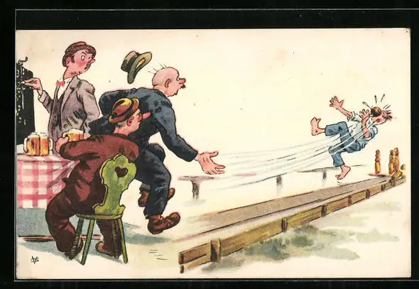 AK Verfehlter Wurf eines Keglers trifft Kegeljungen