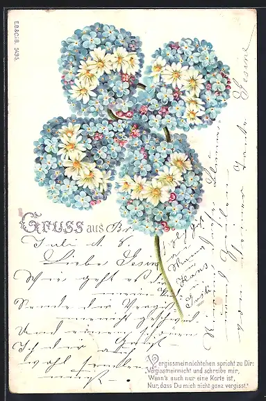 AK Vergissmeinnicht-Kleeblatt mit Margeriten