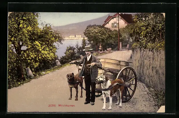AK Verkäufer mit Hundegespann vorm Milchkarren